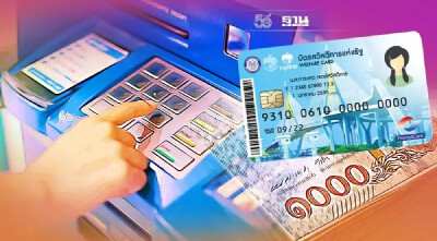 - สอดบัตรสวัสดิการแห่งรัฐเข้าตู้ เอทีเอ็ม ธนาคารกรุงไทย