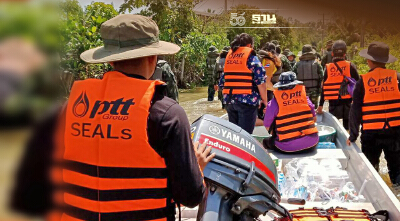 ทั้งนี้ ต้องเรียนว่าปริมาณน้ำยังคงมีระดับที่สูงและท่วมขังในหลายอำเภอ ซึ่งนอกจากทีมปฏิบัติการจะเข้าทำหน้าที่ขนส่งลำเลียงอาหารและสิ่งของจำเป็นต่อการดำรงชีพ รวมถึงให้ความช่วยเหลือแก่ประชาชนในพื้นที่แล้ว ยังจะนำถุงยังชีพในนามชมรมพลังไทยใจอาสา ไปมอบให้แก่ประชาชนเพื่อช่วยบรรเทาความเดือดร้อนเบื้องต้นอีกด้วย โดยที่ผ่านมาทีมปฏิบัติการชมรม PTT Group SEALs ได้ให้ความช่วยเหลือปกติและยามฉุกเฉินแก่ประชาชน ที่ต้องออกจากพื้นที่เพื่อเข้ารับการรักษาตัวอย่างเร่งด่วนแล้วกว่า 50 ราย
