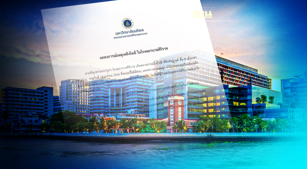 วันที่ 18 ต.ค.64 เพจ sirirajpr เผยแพร่แถลงการณ์เหตุเพลิงไหม้ ในโรงพยาบาลศิริราช ข้อความว่า