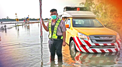 - สายทาง สร.021 ถนนเชิงลาดสะพานมิตรภาพสระขุด อำเภอชุมพลบุรี จังหวัดสุรินทร์ น้ำท่วมสูง 70 เซนติเมตร (ช่วง กม. ที่ 1+200 - 3+800)