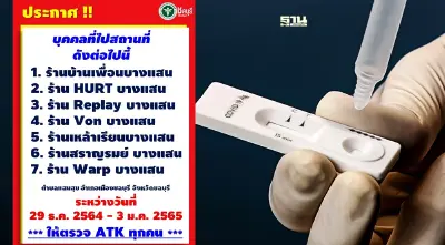 ตำบลแสนสุข อำเภอเมืองชลบุรี จังหวัดชลบุรี ระหว่างวันที่ 29 ธ.ค. 2564 - 3 ม.ค. 2565 ให้ตรวจ ATK ทุกคน