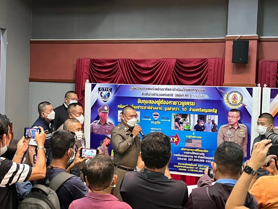 เจ้าหน้าที่ ศปชก.ตร.ได้ร่วมจับกุมนายโอเล่ (นามสมมติ) สัญชาติยูเครน และนายแซน (นามสมมติ) สัญชาติยูเครน ผู้ต้องหาตามหมายจับศาลอาญา ในข้อหาร่วมกันให้ที่พักพิงแก่บุคคลต่างด้าว,ร่วมกันฟอกเงินและร่วมกันฉ้อโกง