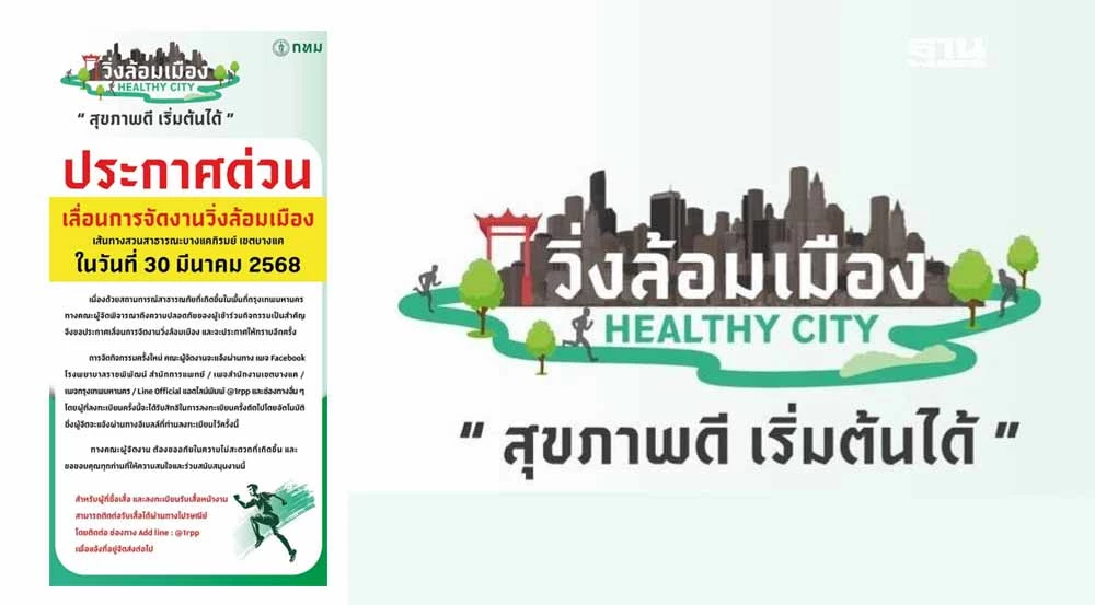 ประกาศด่วนเลื่อนการจัดงานวิ่งล้อมเมือง เขตบางแควันที่ 30 มี.ค. 68
