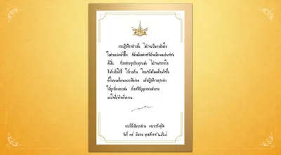 "การปฏิบัติราชการนั้น ไม่ว่าจะเป็นงานส่วนใด ในตำแหน่งหน้าที่ใด ก็ล้วนมีผลต่อชาติบ้านเมืองและประชาชนทั้งสิ้น ข้าราชการทุกฝ่ายทุกระดับ ไม่ว่าจะทำการใด จึงต้องคิดให้ดี ให้รอบด้าน โดยคำนึงถึงผลที่จะเกิดขึ้น ทั้งในระยะสั้นระยะยาวเสียก่อน แล้วปฏิบัติงานทุกอย่าง ให้ถูกต้องเหมาะสม ด้วยสติปัญญาความสามารถ และใจที่สุจริตเป็นธรรม"