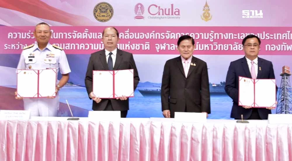 วันนี้ (11 เมษายน 2568) นายฉัตรชัย บางชวด เลขาธิการสภาความมั่นคงแห่งชาติ (สมช.) พล.ร.อ.จิรพล ว่องวิทย์ ผู้บัญชาการทหารเรือ และศาสตราจารย์ ดร.วิเลิศ ภูริวัชร อธิการบดีจุฬาลงกรณ์มหาวิทยาลัย ลงนามบันทึกข้อตกลงความร่วมมือ (MOU) ว่าด้วยการจัดตั้งและขับเคลื่อน “องค์กรจัดการความรู้ทางทะเลของประเทศไทย” ขึ้นมา เพื่อวางรากฐานในการเป็นศูนย์กลางองค์ความรู้ทางทะเลระดับประเทศ