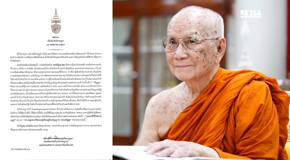 เนื่องในวันวิสาขบูชา 11 พฤษภาคม 2568 เจ้าพระคุณ สมเด็จพระอริยวงศาคตญาณ สมเด็จพระสังฆราช สกลมหาสังฆปริณายก ประทานพระคติธรรม ความว่า
