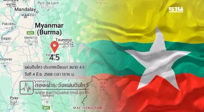 "แผ่นดินไหว"เขย่าเมียนมาล่าสุด ขนาด 4.5 ห่างไทย 195 กิโลเมตร