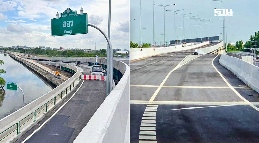 พร้อมสะพานคู่ขนาน 1 ช่องจราจร และก่อสร้างถนนระดับราบ ระยะทาง 1,200 เมตร พร้อมระบบระบายน้ำ ระบบไฟฟ้า และงานจราจรสงเคราะห์ ผลงาน 100% แล้วเสร็จเมื่อวันที่ 27 พ.ค. 68