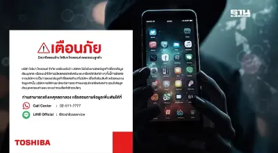 มิจฉาชีพ อ้างชื่อ “โตชิบา” ลวงเงิน ดาวน์โหลดแอปล้วงข้อมูลส่วนตัว