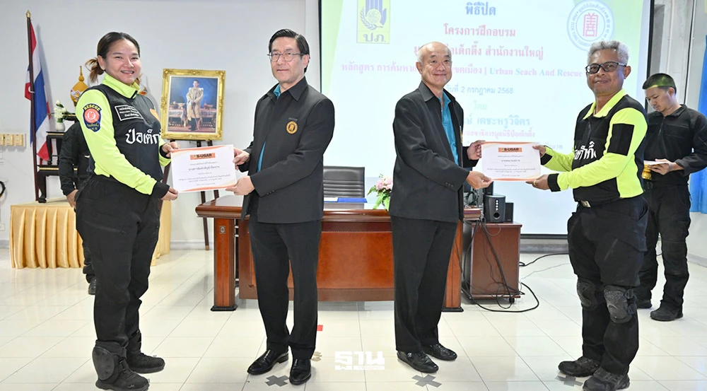 วันนี้ (2 ก.ค. 68) มูลนิธิป่อเต็กตึ๊ง นำโดย นายสุรพงษ์ เตชะหรูวิจิตร กรรมการและรองเลขาธิการ พร้อมด้วย นายสุรพงศ์ เสรฐภักดี กรรมการและรองเหรัญญิก เป็นประธานมอบใบวุฒิบัตรให้แก่ทีมบรรเทาสาธารณภัย ที่สำเร็จการฝึกอบรมหลักสูตร "การค้นหาและกู้ภัยในเขตเมือง (Urban Search And Rescue) หรือ “USAR" เป็นโครงการฝึกอบรมที่มูลนิธิป่อเต็กตึ๊ง ร่วมกับ กรมป้องกันและบรรเทาสาธารณภัย กระทรวงมหาดไทย ซึ่งกำหนดจัดขึ้นระหว่างวันที่ 23 มิถุนายน - 2 กรกฎาคม พ.ศ. 2568