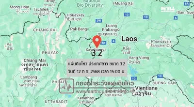 ระทึก!แผ่นดินไหวเขย่าลาว ขนาด 3.2 ลึก 1 กิโลเมตร ห่างไทย จังหวัดน่าน 37 กิโลเมตร เบื้องต้นไม่มีรายงานการสั่นไหว