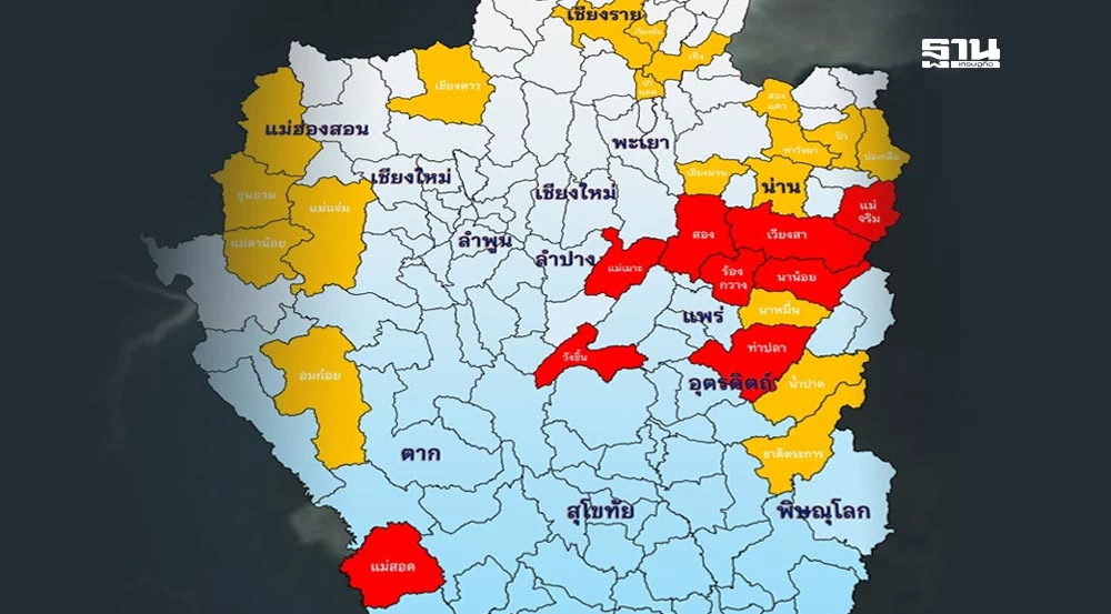 - จังหวัดแม่ฮ่องสอน เชียงใหม่ เชียงราย พะเยา น่าน ตาก พิจิตร พิษณุโลกและเพชรบูรณ์
