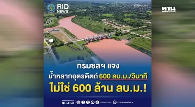 กรมชลฯชี้แจงกรณีน้ำหลากอุตรดิตถ์ 600 ลบ.ม./วินาที ไม่ใช่ 600 ล้าน ลบ.ม.