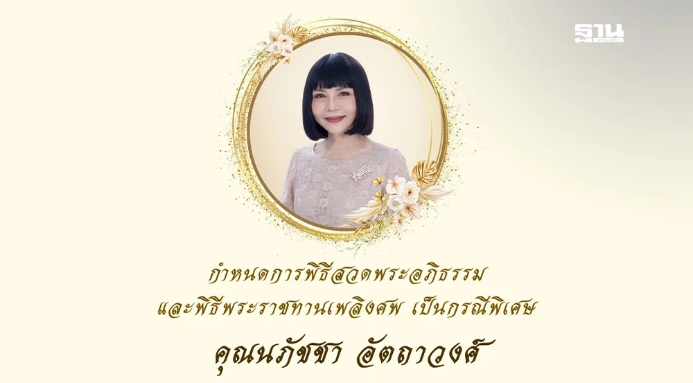 กำหนดการพิธีสวดพระอภิธรรม และ พิธีพระราชทานเพลิงศพ เป็นกรณีพิเศษ คุณนภัชชา อัตถาวงศ์ ณ ฌาปนกิจสถานกองทัพอากาศ ศาลา 17 วัดพระศรีมหาธาตุวรมหาวิหาร (บางเขน)