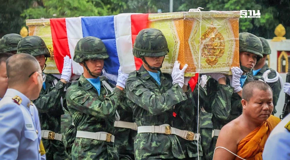 ร่วมพิธีรับศพ ส.ต. วรัญชิต ยวงสุวรรณ ตำแหน่งสนาม พลกระสุน ร้อย.ค.หนัก. กรม ร.ฉก.ทภ.2 กำลังพลที่เสียชีวิตจากการปกป้องอธิปไตย จากเหตุการณ์ปะทะตามแนวชายแดนไทย-กัมพูชา อย่างสมเกียรติ ณ วัดสว่างอารมย์ ต.เหล่าพัฒนา อ.นาหว้า จ.นครพนม