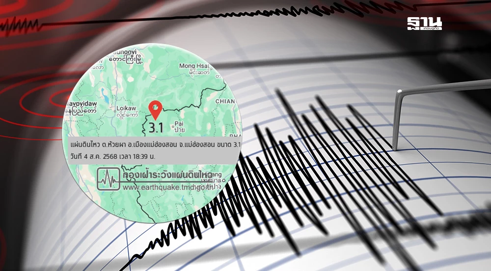 กองเฝ้าระวังแผ่นดินไหว กรมอุตุนิยมวิทยา รายงานว่า เมื่อวันที่ 4 สิงหาคม 2568 เวลา 18.39 น.ได้เกิดเหตุแผ่นดินไหว ขนาด 3.1 ลึก 2 กิโลเมตร ที่ต.ห้วยผา อ.เมืองแม่ฮ่องสอน จ.แม่ฮ่องสอน เบื้องต้นมีประชาชนในพื้นที่แจ้งว่ารับรู้แรงสั่นไหว