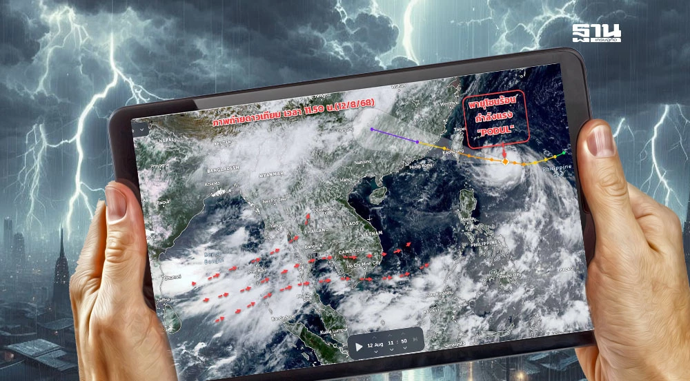 วันที่ 13 สิงหาคม 2568 กรมอุตุนิยมวิทยา อัปเดตสถานการณ์-เส้นทาง "พายุไต้ฝุ่นโพดุล (PODUL)" บริเวณมหาสมุทรแปซิฟิกตะวันตก โดยเมื่อเวลา 13.00น.มีศูนย์กลางทางตอนใต้เกาะไต้หวัน กำลังเคลื่อนตัวทางตะวันตกเฉียงเหนือ คาดว่าจะเคลื่อนผ่านเกาะและเคลื่อนขึ้นฝั่งประเทศจีนทางด้านตะวันออก เช้าวันพรุ่งนี้(14 ส.ค.68)