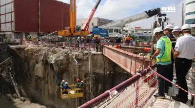 อย่างไรก็ตาม ในช่วงที่ผ่านมาจะมีฝนตกเล็กน้อย แต่ไม่มีผลกระทบต่อแผนงานในภาพรวม ทั้งนี้ ได้มีการจัดเตรียมเครื่องสูบน้ำ และวางกระสอบทรายกั้น ในกรณีที่มีฝนตกหนักอย่างต่อเนื่อง สำหรับการยกวัสดุสิ่งของ เช่น เสาไฟฟ้า หม้อแปลงไฟฟ้า ท่อน้ำประปา และ เศษวัสดุอื่นๆ ที่อยู่ภายในหลุม ได้ทยอยนำขึ้นมาบางส่วนก่อน ซึ่งต้องดำเนินการด้วยความระมัดระวัง และต้องคำนึงถึงความปลอดภัยของเจ้าหน้าที่ผู้ปฏิบัติงานทุกคน