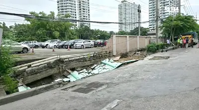 ทั้งนี้สำนักงานเขตฯ ได้ดำเนินการปิดกั้นพื้นที่บริเวณที่ถนนทรุดตัว และห้ามรถโดยสารประจำทางจอดในพื้นที่ใกล้เคียง