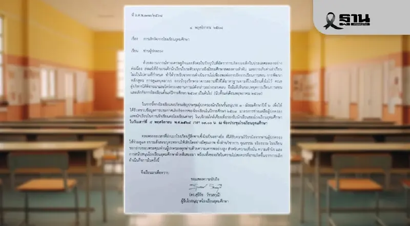 - โรงเรียนได้ส่งหนังสือเชิญผู้ปกครองเข้าร่วมประชุมในวันที่ 8 พฤศจิกายน 2568 เพื่อชี้แจงรายละเอียดและแจ้งมาตรการช่วยเหลือนักเรียนในการหาที่เรียนใหม่