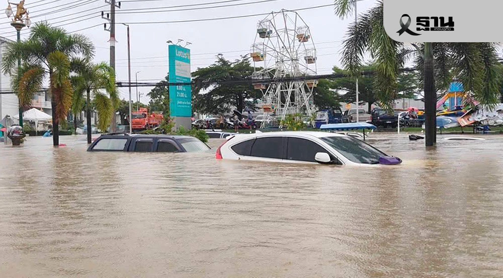 4. ถนนติณสูลานนท์ มีน้ำทะลหนุนเส้นทางข้างศาลปกครองเข้าเมืองรถไม่สามารถผ่านได้