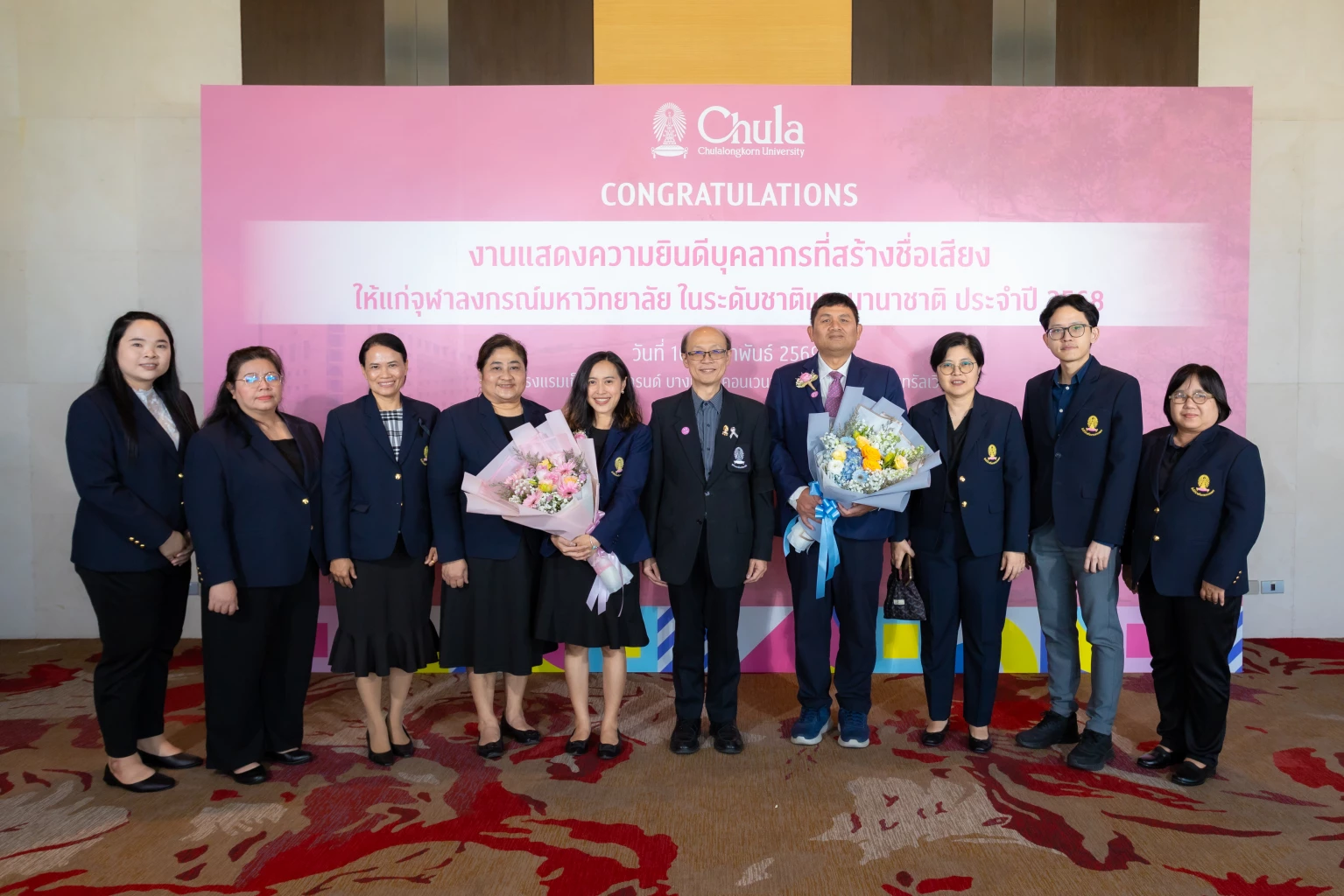 จุฬาลงกรณ์มหาวิทยาลัย โดยสำนักบริหารวิจัย จัดงาน กิจกรรมแสดงความยินดีแก่บุคลากรที่สร้างชื่อเสียงให้แก่จุฬาลงกรณ์มหาวิทยาลัย ในระดับชาติและนานาชาติ ประจำปี 2568 เพื่อยกย่อง เชิดชูเกียรติ และแสดงความขอบคุณต่อคณาจารย์และบุคลากรที่สร้างผลงานโดดเด่นด้านวิชาการ งานวิจัย นวัตกรรม การบริหาร และการทำคุณประโยชน์ต่อสังคม อันนำมาซึ่งชื่อเสียงของมหาวิทยาลัยและประเทศชาติในเวทีระดับชาติและนานาชาติ