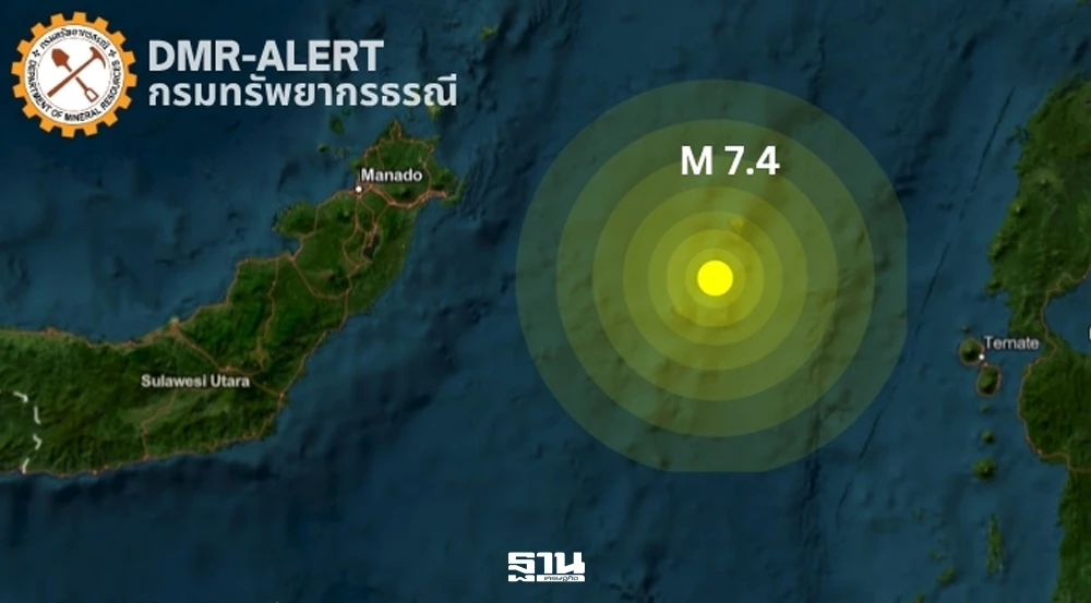 วันที่ 2 เม.ย. 69 เวลา 05.48 น. (ตามเวลาประเทศไทย) ศูนย์ปฏิบัติการธรณีพิบัติภัย กรมทรัพยากรธรณี รายงานว่า เกิดแผ่นดินไหวในทะเลขนาด 7.4 ซึ่งจัดเป็นแผ่นดินไหวขนาดใหญ่ (Major) ที่ระดับความลึก 35 กิโลเมตร จุดเหนือศูนย์เกิดแผ่นดินไหวบริเวณนอกชายฝั่งประเทศอินโดนีเซีย ห่างจากเมืองเทอร์นาเต (Ternate) ประเทศอินโดนีเซีย ไปทางทิศตะวันตกเฉียงเหนือค่อนไปทางทิศตะวันตก ประมาณ 126 กิโลเมตร ละติจูด 1.117 องศาเหนือ ลองจิจูด 126.297 องศาตะวันออก ทั้งนี้กองเฝ้าระวังแผ่นดินไหว กรมอุตุนิยมวิทยา และ USGS รายงานว่ามีแผ่นดินไหวตาม หรือ Aftershockจำนวน 14 ครั้ง ตั้งแต่ขนาด 4.4–5.9 (ข้อมูล ณ เวลา 11.09 น.)