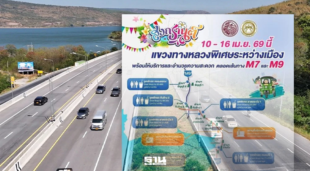 มอเตอร์เวย์ M7-M9 เปิดจุดบริการฟรีสงกรานต์ 2569 เดินทางปลอดภัย