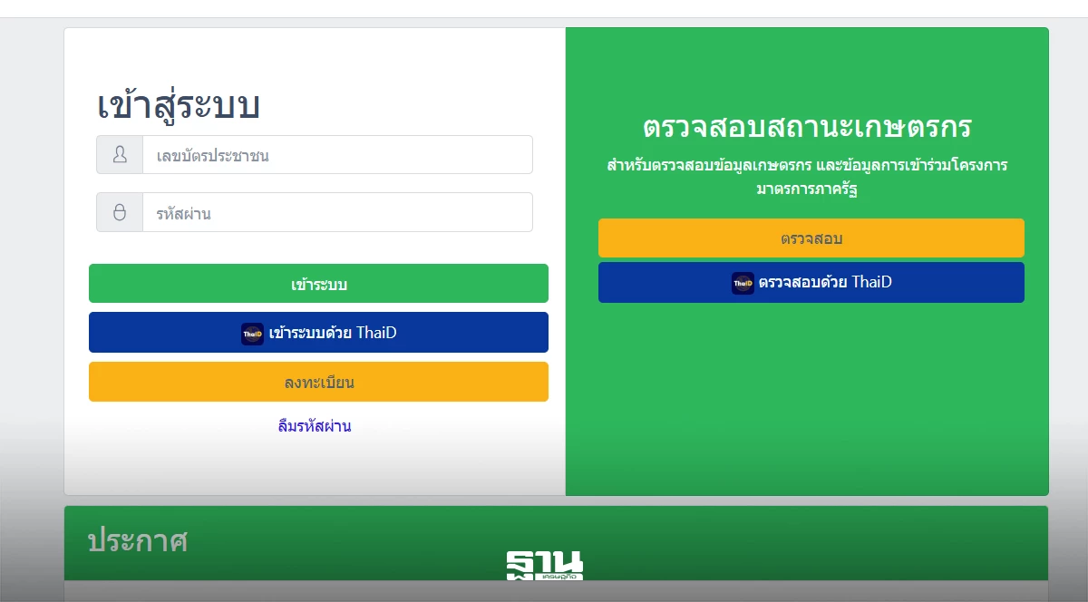 - เข้าสู่ระบบ กรอกรหัสทะเบียนเกษตรกร 12 หลัก