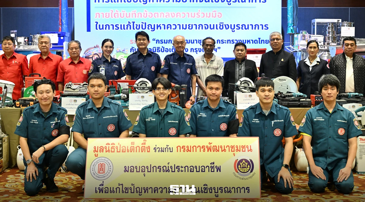 นายสุรพงษ์ เตชะหรูวิจิตร กรรมการและรองเลขาธิการ กล่าวว่า โครงการแก้ไขปัญหาความยากจนเชิงบูรณาการ มูลนิธิป่อเต็กตึ๊ง ได้สนับสนุนอุปกรณ์ประกอบอาชีพ ช่วยเหลือครัวเรือนยากจน ตามบันทึกข้อตกลงความร่วมมือแก้ไขปัญหาความยากจน ระหว่างกรมการพัฒนาชุมชนและมูลนิธิป่อเต็กตึ๊ง