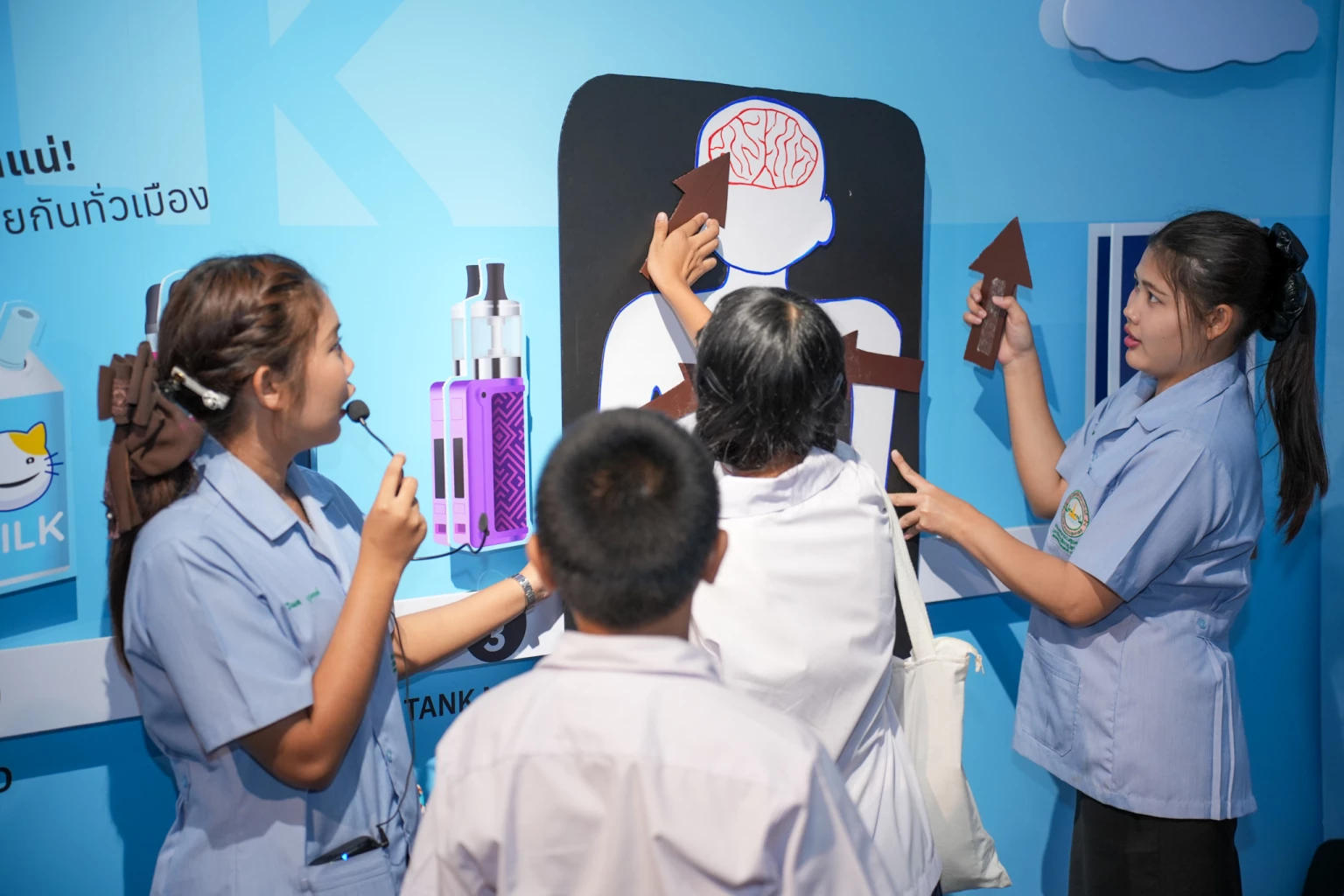 โดยมีครูและนักเรียน ชั้นประถมศึกษาตอนต้นและตอนปลาย จำนวน130 คน จาก โรงเรียนวัดสมณานัมบริหาร โรงเรียนวัดชนะสงคราม และโรงเรียนวัดเวฬุราชิน เข้าร่วมกิจกรรม ซึ่งได้รับผลตอบรับอย่างดี หลังครูและนักเรียนเห็นตรงกันว่า ข้อมูลเรื่องภัยบุหรี่ไฟฟ้าจากนิทรรศการเข้าใจง่าย และสามารถนำข้อมูลไปเตือนภัยคนใกล้ตัวได้ ขณะที่งานวิจัยต่างชาติชี้ให้เห็นว่า พ่อแม่ที่สูบบุหรี่ไฟฟ้าส่งผลให้ลูกเสี่ยงเกิดภาวะทางอารมณ์