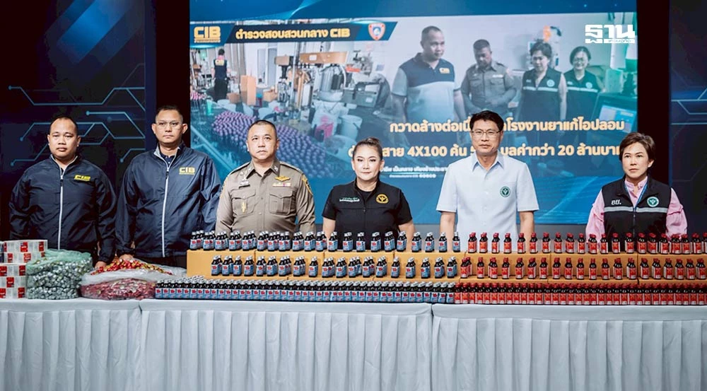 กองบัญชาการตำรวจสอบสวนกลาง ร่วมกับ สำนักงานคณะกรรมการอาหารและยา ร่วมปฏิบัติการจับกุมกวาดล้างเครือข่ายผู้ผลิตและจำหน่ายยาแก้ไอปลอมรายใหญ่ในพื้นที่ จ.สมุทรปราการ จ.สระบุรี จ.นครปฐม และ จ.พระนครศรีอยุธยา ปฏิบัติการจับกุมกวาดล้างเครือข่ายผู้ผลิตและจำหน่ายยาแก้ไอปลอมรายใหญ่ในพื้นที่ ตรวจยึด อายัด ยาสำเร็จรูป เครื่องจักร เครื่องมือ อุปกรณ์ที่ใช้ในการผลิต และวัตถุดิบจำนวนมาก