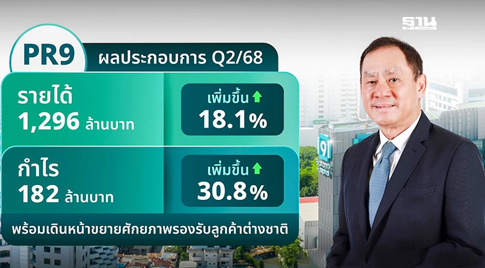 นพ. เสถียร ภู่ประเสริฐ กรรมการผู้อำนวยการ บริษัท โรงพยาบาลพระรามเก้า จำกัด (มหาชน) หรือ PR9 ผู้ให้บริการทางการแพทย์และการรักษาพยาบาลชั้นนำของประเทศไทย กล่าวว่า ประกอบการไตรมาส 2 ปี 2568 เพิ่มขึ้นเมื่อเทียบกับช่วงเดียวกันของปีก่อน แบ่งเป็นรายได้ 1,296 ล้านบาท เติบโต 18.1% และกำไร 182 ล้านบาท เติบโตเพิ่มขึ้น 30.8% ซึ่งเป็นไปตามที่คาดการณ์เอาไว้