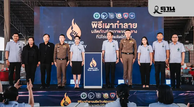 สาธารณสุข ร่วมกับ สำนักงานตำรวจแห่งชาติ เผาทำลายของกลางผลิตภัณฑ์สุขภาพผิดกฎหมายจากผลงานปฏิบัติการกวาดล้างจับกุมผู้กระทำผิดกว่า 200 คดี น้ำหนักรวมเกือบ 40 ตัน มูลค่ากว่า 250 ล้านบาท
