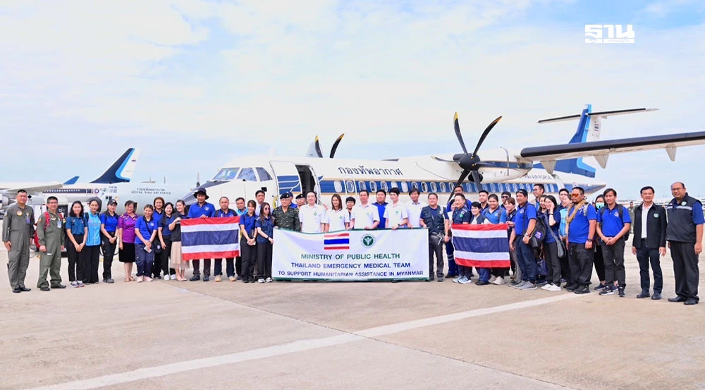 18 เมษายน 2568 ที่ท่าอากาศยานทหาร 2 (บน.6) ดอนเมือง กรุงเทพฯ นพ.โอภาส การย์กวินพงศ์ ปลัดกระทรวงสาธารณสุข มอบหมายให้ นพ.อุดม อัศวุตมางกุร สาธารณสุขนิเทศก์ เขตสุขภาพที่ 4 พร้อมด้วย นพ.ธิติ แสวงธรรม รองอธิบดีกรมอนามัย นพ.สุทัศน์ โชตนพันธ์ รองอธิบดีกรมควบคุมโรค และ นพ.สฤษดิ์เดช เจริญไชย ผู้อำนวยการกองสาธารณสุขฉุกเฉิน ร่วมส่งทีมปฏิบัติการฉุกเฉินทางการแพทย์และสาธารณสุขในภาวะภัยพิบัติ(Thailand EMT) ผลัด 2 เดินทางไปช่วยเหลือผู้ประสบภัยแผ่นดินไหว ณ เมืองมัณฑะเลย์ สาธารณรัฐแห่งสหภาพเมียนมา