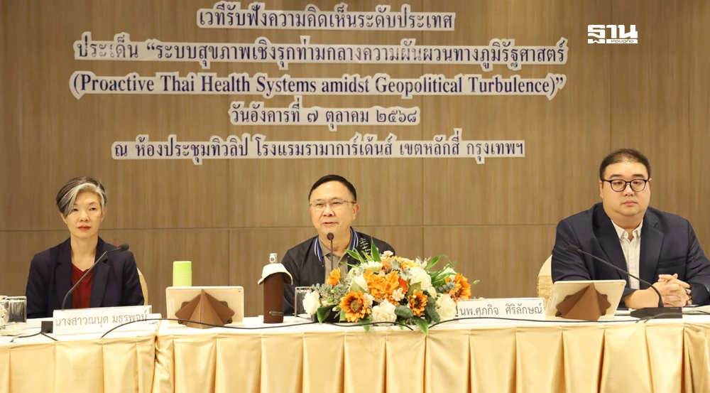 สำนักงานคณะกรรมการสุขภาพแห่งชาติ (สช.) ร่วมกับภาคีเครือข่าย จัดเวทีรับฟังความคิดเห็นระดับประเทศ ประเด็น "ระบบสุขภาพเชิงรุกท่ามกลางความผันผวนทางภูมิรัฐศาสตร์ (Proactive Thai Health Systems amidst Geopolitical Turbulence)" เมื่อวันที่ 7 ต.ค. 2568 ซึ่งมีผู้แทนหน่วยงานภาคียุทธศาสตร์ภาควิชาการ ภาครัฐ ภาคเอกชน และภาคประชาสังคม รวมถึงผู้แทนสมัชชาสุขภาพจังหวัดและกรรมการเขตสุขภาพเพื่อประชาชน (กขป.) ทั่วประเทศเข้าร่วมกว่า 400 คน