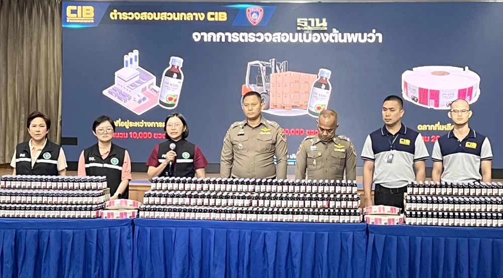 1 กุมภาพันธ์ 2567 กองบัญชาการตำรวจสอบสวนกลาง สำนักงานคณะกรรมการอาหารและยา ร่วมกันแถลงผลงานจับกุมกวาดล้างผู้ผลิตและขายยาแก้ไอปลอมรายใหญ่ ตรวจยึดและอายัดเครื่องจักร อุปกรณ์การผลิต และยาแก้ไอปลอมกว่า 10,000 ขวด มูลค่ากว่า 1,500,000 บาท