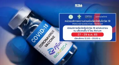 สำนักอนามัย กรุงเทพมหานคร ร่วมกับศูนย์การค้าเซ็นทรัลเวิลด์ เปิดให้บริการฉีดวัคซีนไฟเซอร์ (Pfizer) ฟรี ในวันที่ 27-29 ธ.ค. 65 ตั้งแต่เวลา 12.00 - 20.00 น. ที่ชั้น 5 โซน Atrium ศูนย์การค้าเซ็นทรัลเวิลด์ โดยขึ้นไปยังจุดบริการฉีดวัคซีนที่ใกล้ที่สุด สามารถใช้บันไดเลื่อนหน้า Central @centralwOrld แล้วขึ้นไปยังชั้น 5