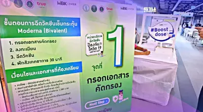 ศูนย์การค้าเอ็ม บี เค เซ็นเตอร์ ร่วมกับ โรงพยาบาลกลาง สำนักการแพทย์ กรุงเทพมหานคร เปิดหน่วยบริการฉีดวัคซีนโควิด-19 เข็มกระตุ้น โมเดอร์นา ชนิดไบวาเลนต์ (Moderna Bivalent) สำหรับประชาชนคนไทย ต่างชาติ ต่างด้าว โดยสามารถวอล์ก -อิน เข้ารับวัคซีนได้ตั้งแต่วันนี้ - 28 พฤษภาคม 2566 ทั้งนี้สามารถตรวจสอบรายละเอียด - เงื่อนไข คุณสมบัติต่างๆก่อนเข้ารับการฉีดวัคซีนที่นี่