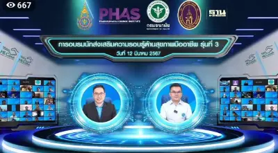 12 มีนาคม 2567 ดร.นพ.สราวุฒิ บุญสุข รักษาการในตำแหน่งผู้ตรวจราชการกระทรวงสาธารณสุข เขตสุขภาพที่ 1 เป็นประธาน เปิดการอบรมนักส่งเสริมความรอบรู้ด้านสุขภาพมืออาชีพ รุ่นที่ 3 เพื่อพัฒนาบุคลากรผู้ปฏิบัติงานด้านสาธารณสุขในการสร้างความรอบรู้ด้านสุขภาพ หวังยกระดับความรอบรู้ด้านสุขภาพคนไทยสู่การมีพฤติกรรมสุขภาพที่ดี และคุณภาพชีวิตที่ดี