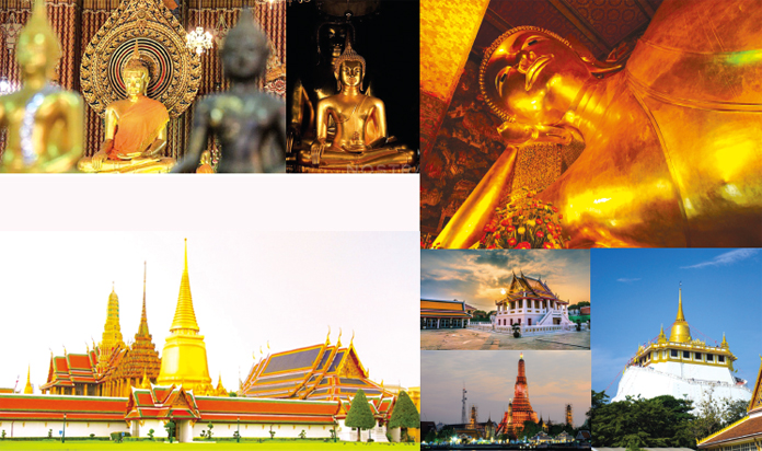 ต่อด้วย 5. วัดสระเกศราชวรมหาวิหาร(วัดภูเขาทอง)พระอารามหลวงชั้นโท ชนิดราชวรมหาวิหาร สร้างในสมัยอยุธยา6.วัดระฆังโฆสิตารามวรมหาวิหารหรือ วัดหลวงพ่อโตมีที่มาจากการขุดพบระฆังโบราณในเขตวัด จึงได้ชื่อ“วัดระฆัง” ตามคติเชื่อว่าหากได้สักการะที่วัดนี้ "จะมีคนนิยมชมชื่น มีชื่อเสียงโด่งดังตลอดปี" 7.วัดอรุณราชวรารามราชวรมหาวิหาร (วัดแจ้ง)พระปรางค์วัดอรุณ เปรียบเสมือนสัญลักษณ์แห่งความรุ่งเรืองทางศิลปกรรมแห่งรัชสมัยรัตนโกสินทร์ เดินเวียนเทียนทักษิณาวัดรอบองค์พระปรางค์ 3 รอบ จะดลให้ “ชีวิตรุ่งโรจน์ทุกคืนวัน” 8.วัดพระเชตุพนวิมลมังคลารามราชวรมหาวิหาร (วัดโพธิ์)เดิมชื่อ วัดโพธาราม เป็นวัดเก่าสมัยกรุงศรีอยุธยาเมื่อมากราบสักการะขอพรที่วัดนี้ จะทำให้ “ร่มเย็นเป็นสุข” 9.วัดกัลยาณมิตรวรมหาวิหารสักการะพระพุทธไตรรัตนนายกหลวงพ่อโต หรือ ซำปอกง พระประธานในพระวิหาร จะทำให้ “เดินทางปลอดภัยพบแต่มิตรไมตรีที่ดี"