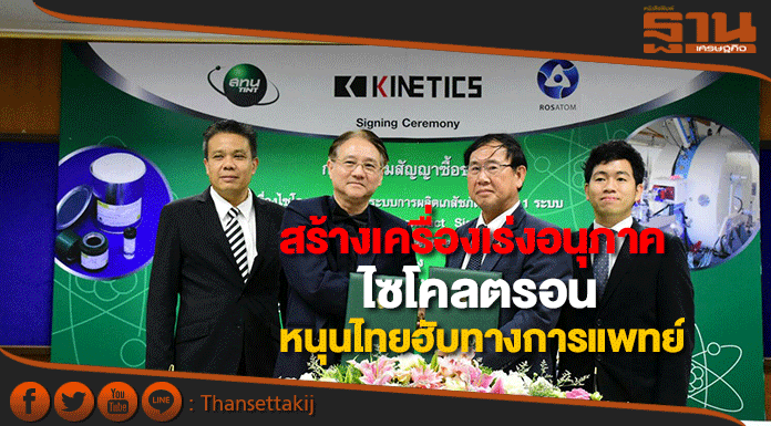 ดร.พรเทพ นิศามณีพงษ์ ผู้อำนวยการ สถาบันเทคโนโลยีนิวเคลียร์แห่งชาติ (องค์การมหาชน) (สทน.) กระทรวงวิทยาศาสตร์และเทคโนโลยี เปิดเผยว่า สทน.ได้มีการลงนามว่าจ้างบริษัทไคเนติคส์ จำกัด เพื่อก่อสร้างเครื่องไซโคลตรอนว่า จากนโยบายรัฐบาลด้านการพัฒนาและส่งเสริมการใช้ประโยชน์จากวิทยาศาสตร์ เทคโนโลยีการวิจัย พัฒนาและนวัตกรรม และการพัฒนาขีดความสามารถในการวิจัยด้านวิทยาศาสตร์การแพทย์และสาธารณสุข โดยจัดให้มีบุคคลากรและเครื่องมือที่ทันสมัย