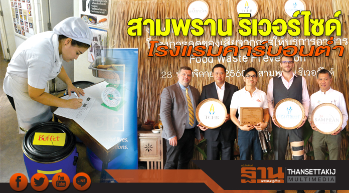 โรงแรมสามพราน ริเวอร์ไซด์ มุ่งสู่การเป็นโรงแรมคาร์บอนตํ่าอย่างจริงจัง จึงเข้าร่วมโครงการลดของเสียจากการให้บริการอาหาร (Food Waste prevention) กับบริษัท LightBlue Environmental Consulting ตั้งแต่เดือนพฤศจิกายน 2559 โดยได้รับการสนับสนุนจากสำนักงานส่งเสริมการจัดประชุมและนิทรรศการ (องค์การมหาชน) หรือ สสปน.