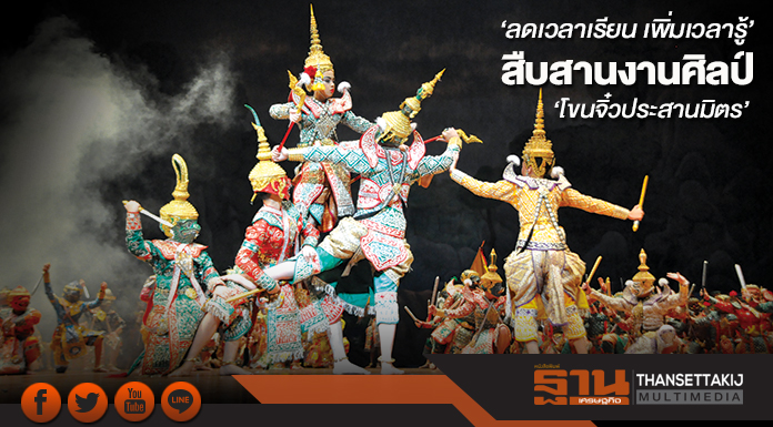 ด้านผศ.ไตรรัตน์ พิพัฒโภคผล รองผู้อำนวยการฝ่ายกิจการนักเรียน ในฐานะหัวหน้าผู้ฝึกสอนโขนเด็กหรือโขนจิ๋วประสานมิตรเล่าให้เราฟังว่า ทางโรงเรียนได้รับการสนับสนุนที่ดีจากหลากหลายภาคส่วน ซึ่งนอกจากนำไปเป็นส่วนของการจัดแสดง ยังนำมาต่อฐานเติมยอดในศูนย์ศึกษาภูมิปัญญาไทยในรามเกียรติ์เพื่อเป็นแหล่งการเรียนรู้ภูมิปัญญาไทยด้านต่างๆ ที่เกี่ยวข้องกับรามเกียรติ์ และวิถีไทยรามเกียรติ์ รวมทั้งเป็นแหล่งบริการความรู้ ศูนย์สื่อการเรียนรู้ ของสถานศึกษาและชุมชน เพื่อประโยชน์ในการศึกษา เก็บรวบรวมรักษาเผยแพร่ข้อมูลแลกเปลี่ยนเรียนรู้ประสบการณ์อย่างครบครันทั้งบุคลากร อุปกรณ์สนับสนุนทุกรูปแบบ และที่สำคัญเป็น การสร้างจิตสำนึกในการอนุรักษ์ เผยแพร่ภูมิปัญญาไทย ภาษาไทย วรรณคดีไทย ศิลปะวัฒนธรรม และประเพณีไทย