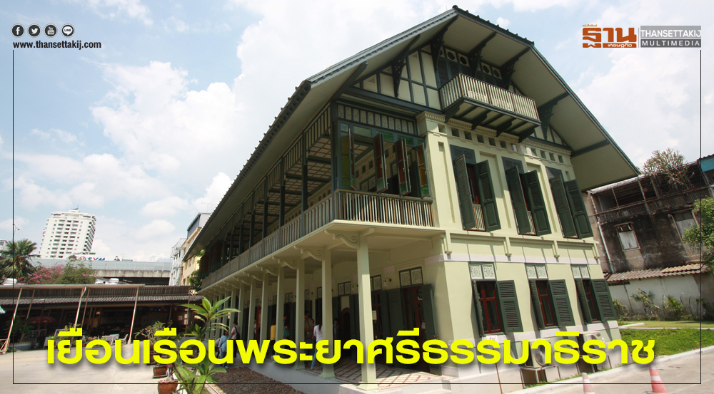 “เรือนพระยาศรีธรรมาธิราช” สร้างโดยพระยาศรีธรรมาธิราช(เจิม บุณยรัตพันธุ์) ผู้ถือตำแหน่งปลัดกระทรวงมหาดไทยคนแรก หนึ่งในคนไทยที่มีโอกาสเรียนรู้ศิลปะ สถาปัตยกรรม เทคนิคและวิธีการก่อสร้างแบบตะวันตกในยุคเปลี่ยนผ่านของสถาปัตยกรรมแบบยุคเก่าและยุคใหม่ในพระนครเป็นจำนวนมาก โดยเฉพาะงานออกแบบของ Mr. Mario Tamagno สถาปนิกในราชสำนักสยามผู้ออกแบบอาคารที่มีเอกลักษณ์ และความงามเฉพาะตัวอย่างพระที่นั่งอนันตสมาคม วังปารุสกวัน ตึกไทยคู่ฟ้าทำเนียบรัฐบาล และอาคารสถานีรถไฟหัวลำโพง เป็นต้น เมื่อผนวกกับนิสัยส่วนตัวของพระยาศรีธรรมาธิราชที่เป็นคนประณีต รักสวยรักงาม มีความคิดสร้างสรรค์ จนสมเด็จพระเจ้าบรมวงศ์เธอเจ้าฟ้ากรมพระยานริศรานุวัดติวงศ์ทรงชมว่า “...พระยาศรีธรรมาธิราชเป็นผู้มีความคิดชอบทำอะไรแปลกๆ และความคิดของท่านนั้นไม่ปล่อยให้แปลกจนผิดนัก” ทำให้เรือนพระยาศรีธรรมาธิราชคือหนึ่งในสถาปัตยกรรมที่เป็นสัญลักษณ์ของการปะทะสังสรรค์ระหว่างยุค อาคารก่ออิฐถือปูนที่มีความมั่นคงแข็งแรง การใช้กระเบื้องลอนใยหินซึ่งถือเป็นวัสดุที่เป็นของประหลาดในสมัยนั้นในการมุงหลังคา เมื่อผสมผสานกับทุกรายละเอียดในแต่ละห้อง ฝ้าเพดาน บานหน้าต่าง ภาพจิตรกรรมบนฝาผนังที่ปรากฏสู่สายตาของเราในวันนี้คือภาพสะท้อนของกาลเวลาจนเป็นหนึ่งในเรื่องราวที่เชื่อมต่อเวลาระหว่างอดีตและปัจจุบันให้น่าค้นหามากยิ่งขึ้น