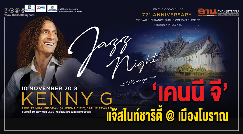 "เคนนี จี" นักดนตรีเป่าแซกโซโฟนแนวสมูธแจ๊ส ผู้ได้รับการบันทึกสถิติโลกกินเนสส์ว่าเป็นบุคคลที่เล่นโน๊ตแซ็กโซโฟนยาวนานที่สุดในโลก จะเดินทางมาเมืองไทยเพื่อเปิดการแสดง ท่ามกลางฉากหลังเป็นบริเวณพระที่นั่งสรรเพชญปราสาท ภายในเมืองโบราณ สุดยอดความงดงามด้านสถาปัตยกรรมของไทย