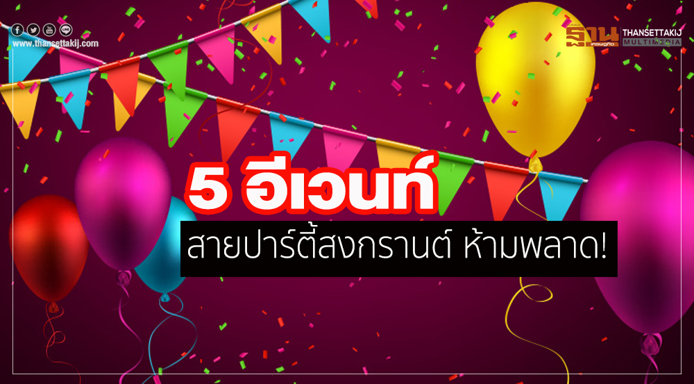 สงกรานต์วันดีปีใหม่ไทยกลับมาอีกครั้งจ้า เรียกได้ว่าปีนี้หลาย ๆ คนคงเตรียมตัวสาดน้ำกันอย่างเต็มที่ เพราะอากาศที่ร้อนระอุขึ้นเรื่อยๆ เรียกได้ว่าร้อนรับเทศกาลแห่งความชุ่มฉ่ำที่กำลังจะมาถึง ส่วนใครที่ยังไม่รู้จะหนีร้อนไปสาดน้ำที่ไหน วันนี้เรารวบรวม 5 สถานที่สุดฮอต รับประกันความมันส์ เพื่อดับร้อนในช่วงสงกรานต์นี้