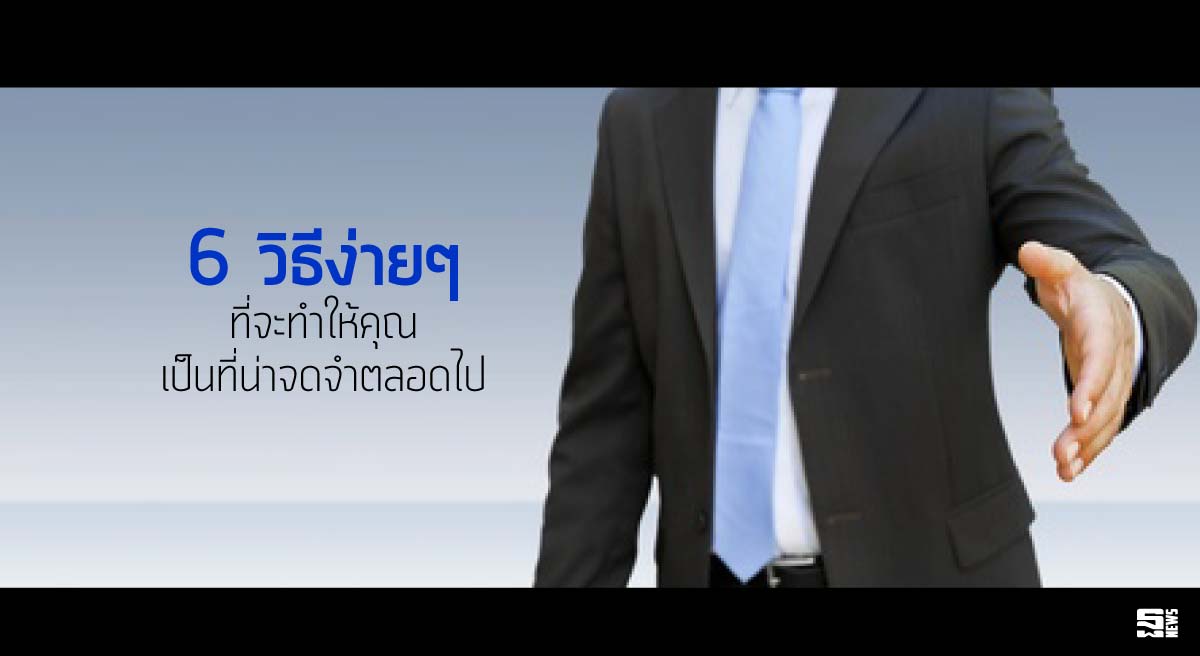 ดังนั้นแล้ว 6 วิธีง่ายๆ ที่พิสูจน์มาแล้วว่าช่วยให้การพบกับคนมากหน้าหลายตา จะทำให้คุณเป็นที่น่าจดจำตลอดไป ตั้งแต่ครั้งแรกที่ได้เจอกัน เพราะจำไว้ว่า "คุณไม่มีโอกาสในการสร้างความประทับใจแรกพบเป็นหนที่สอง"