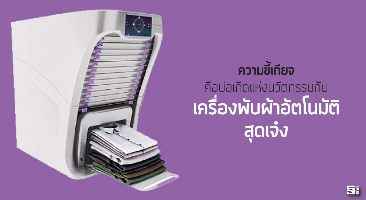 เครื่องพับผ้าอาจไม่ใช่เรื่องแปลกใหม่นัก เพราะมีให้เห็นกันอยู่ทั่วไปในแวดวงอุตสากรรมสิ่งทอ แต่ด้วยพฤติกรรมของพ่อบ้าน แม่บ้าน ที่รักความสบาย จึงทำให้เกิดนวัตกรรม เพื่อพ่อบ้าน แม่บ้าน ยุคใหม่ นั้นคือ FoldiMate เครื่องพับผ้าอัตโนมัติสำหรับใช้ในครัวเรือน ที่จะช่วยทุ่นแรงทุ่นเวลาทำงานบ้านของคุณได้ดีไม่น้อย เพียงแค่จับเสื้อผ้าขึ้นหนีบ เครื่องก็จะดูดเข้าไปพับให้อย่างเนี้ยบ ไร้รอยยับ แป๊บเดียว ก็ได้ผ้าเรียบกองโตพร้อมเก็บใส่ตู้เสื้อผ้า