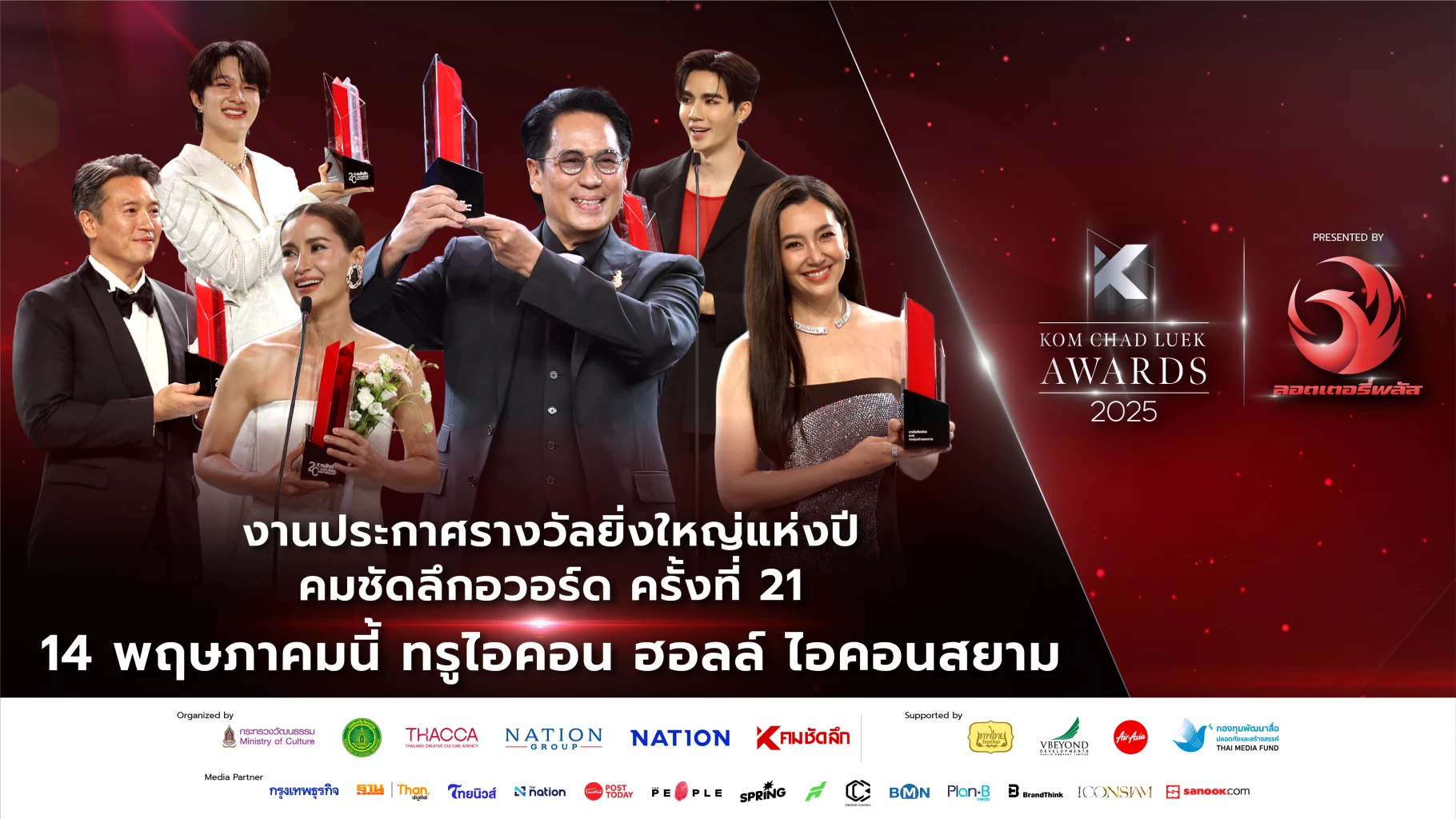 รางวัลแห่งเกียรติยศของวงการบันเทิงไทย "คมชัดลึก อวอร์ด 2025" (KOM CHAD LUEK AWARDS 2025) กลับมาอย่างยิ่งใหญ่อีกครั้งในปีที่ 21 พร้อมตอกย้ำจุดยืนการเชิดชูคุณภาพผลงานและบุคลากรในวงการบันเทิงไทย ทั้งด้านละครโทรทัศน์ ภาพยนตร์ เพลงไทยสากล และเพลงลูกทุ่ง โดยเปิดให้แฟนๆ ร่วมโหวตรางวัลมหาชน แล้วตั้งแต่วันนี้ถึง 4 พฤษภาคม 2568